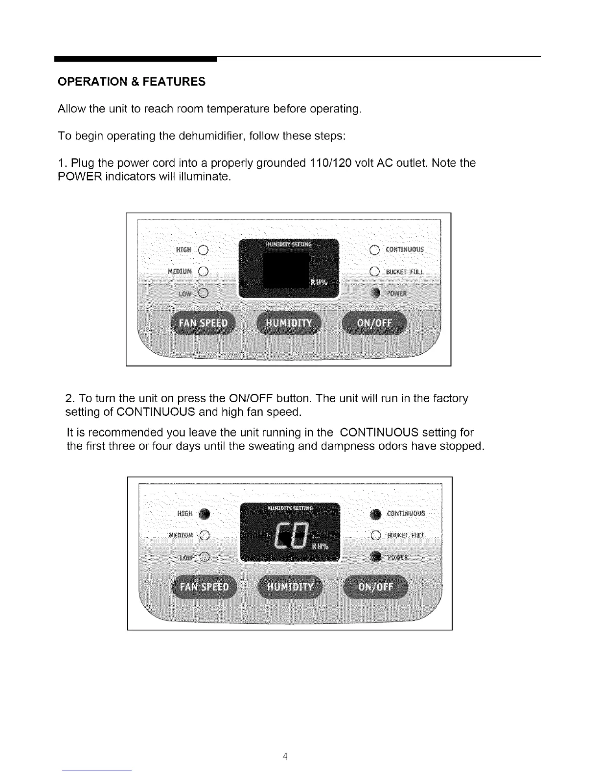 To begin operating the dehumidifier, follow these steps: