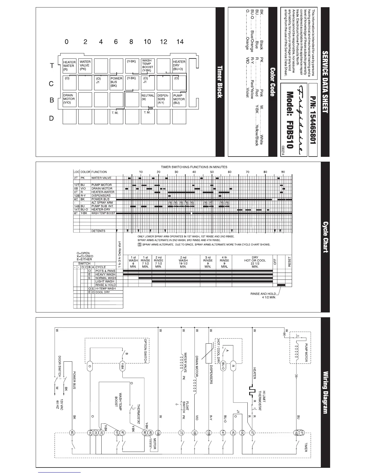 Frigidaire FDB510LCS3 - Service Data and Diagrams; Cycle Chart; Wiring Diagram