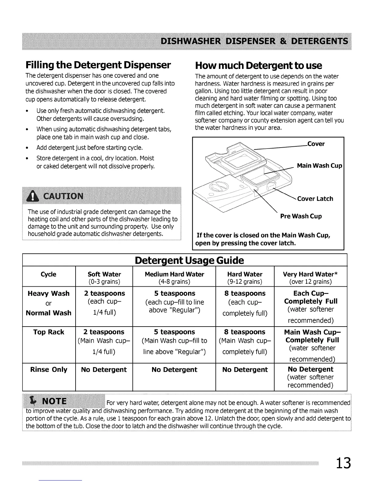 portion of the cycle. As a rule, use i teaspoon for each grain above 12. Unlatch the door, open slowly and add detergent to