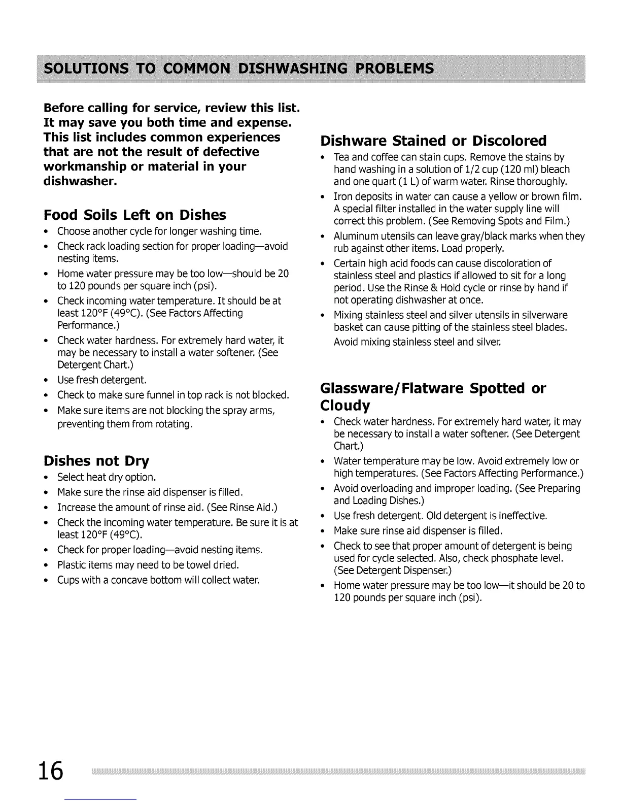 • Increase the amount of rinse aid. (See Rinse Aid.)
