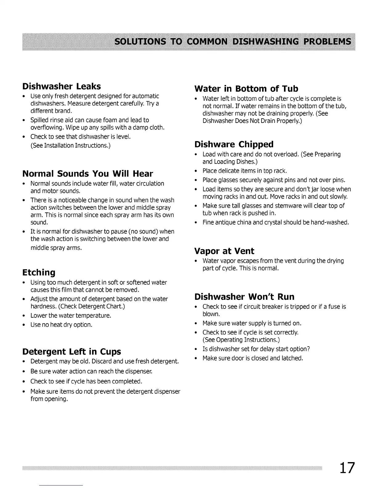 dishwashers. Measure detergent carefully. Try a