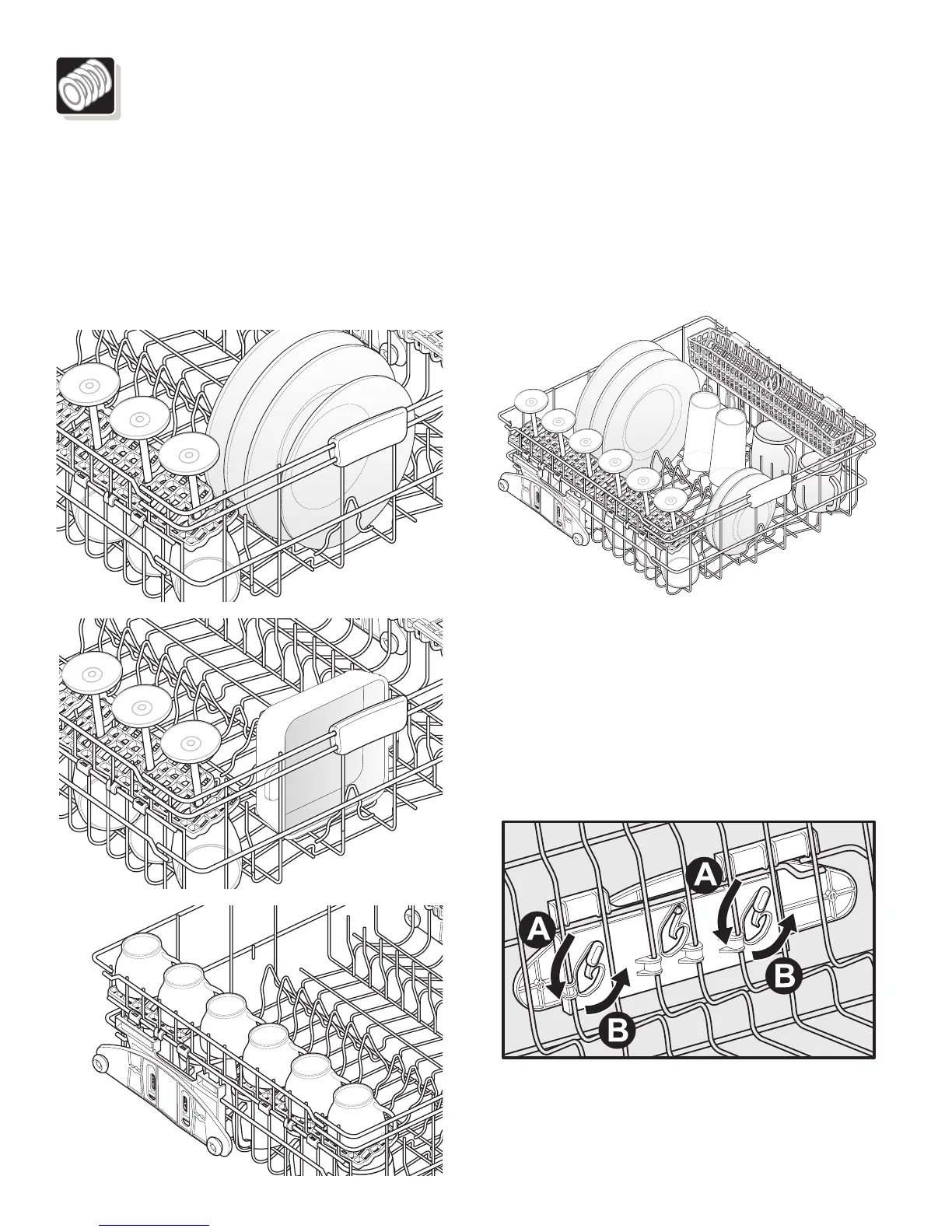 To raise the upper rack, refer to the figure below.