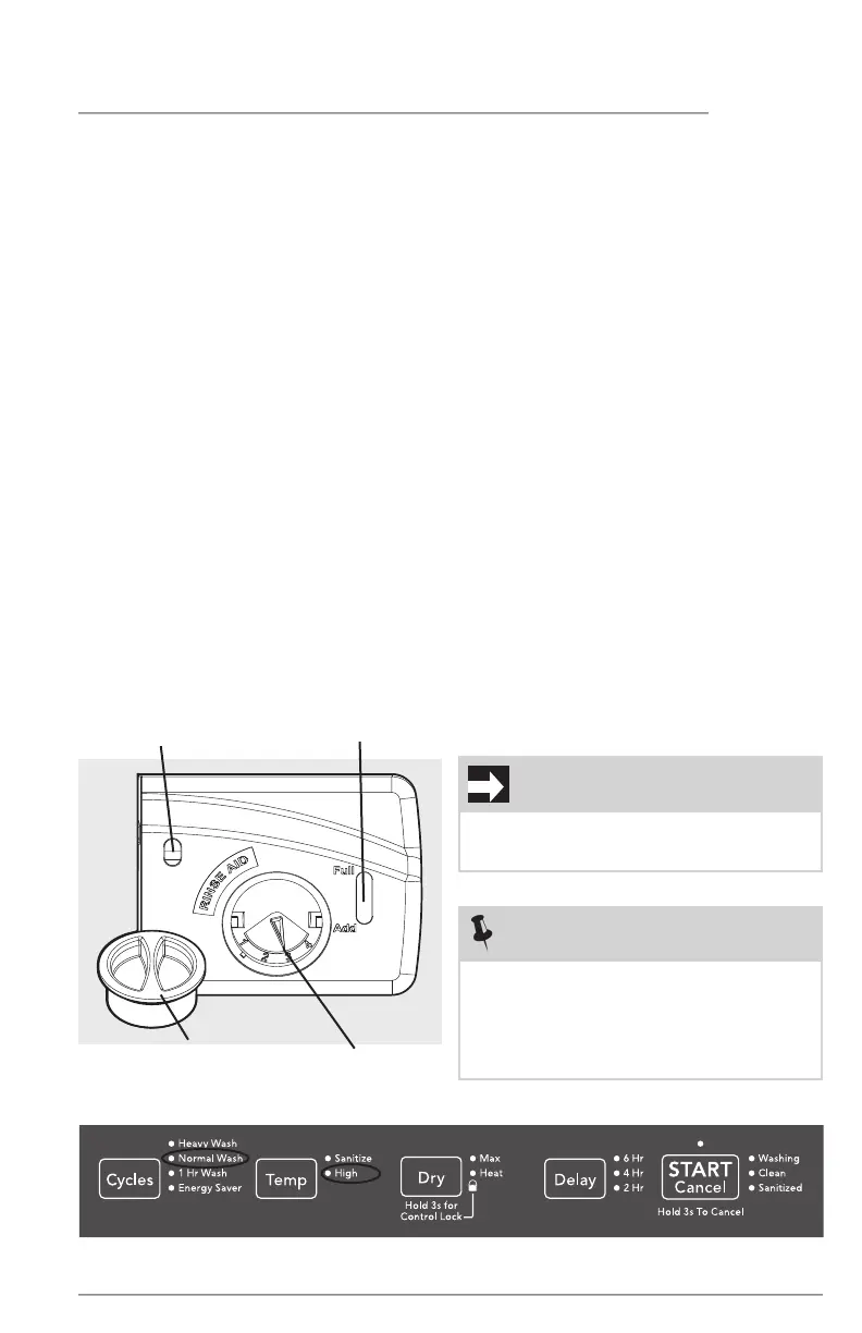 * Select the Normal Wash and High Temp options along with a Rinse Aid agent for