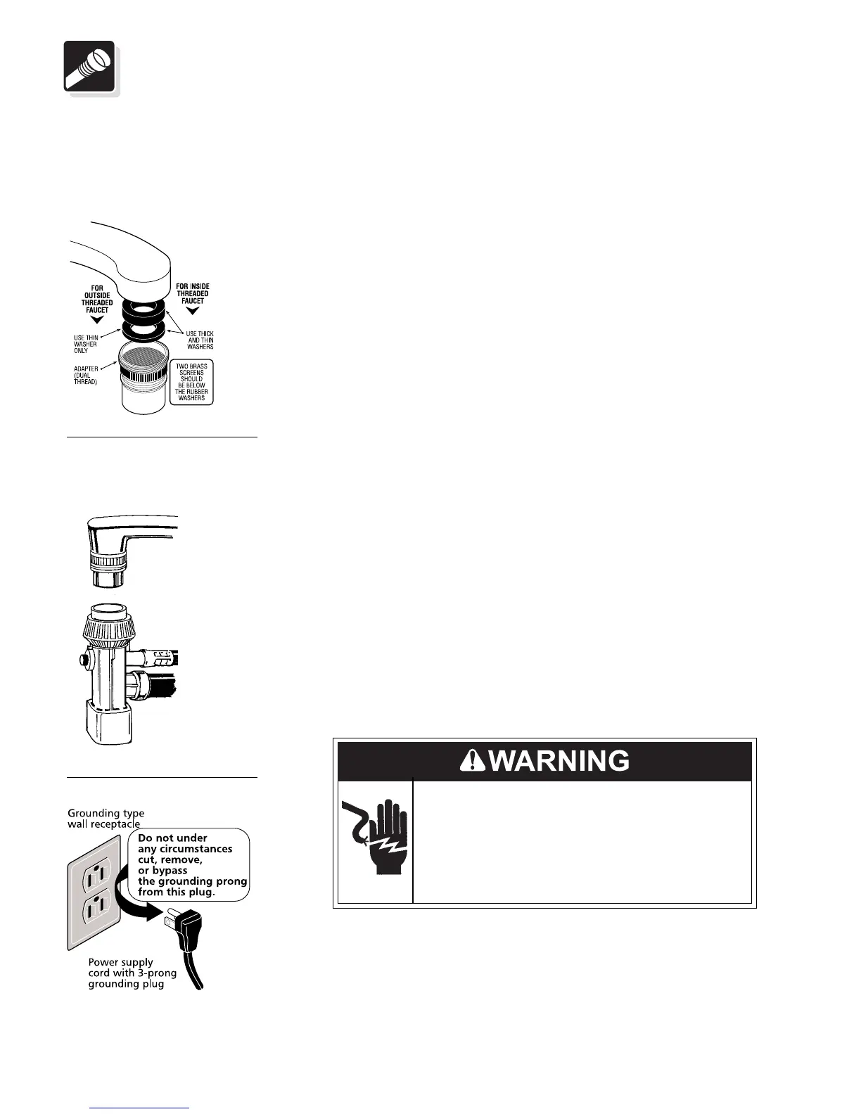 • If faucet has no threads, an adapter kit with instructions for attachment to
