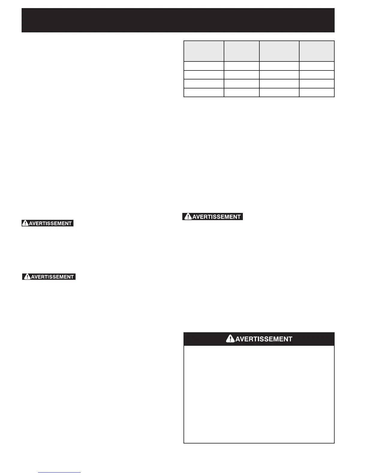 table A pour connaître l'ampérage requis du disjoncteur ou