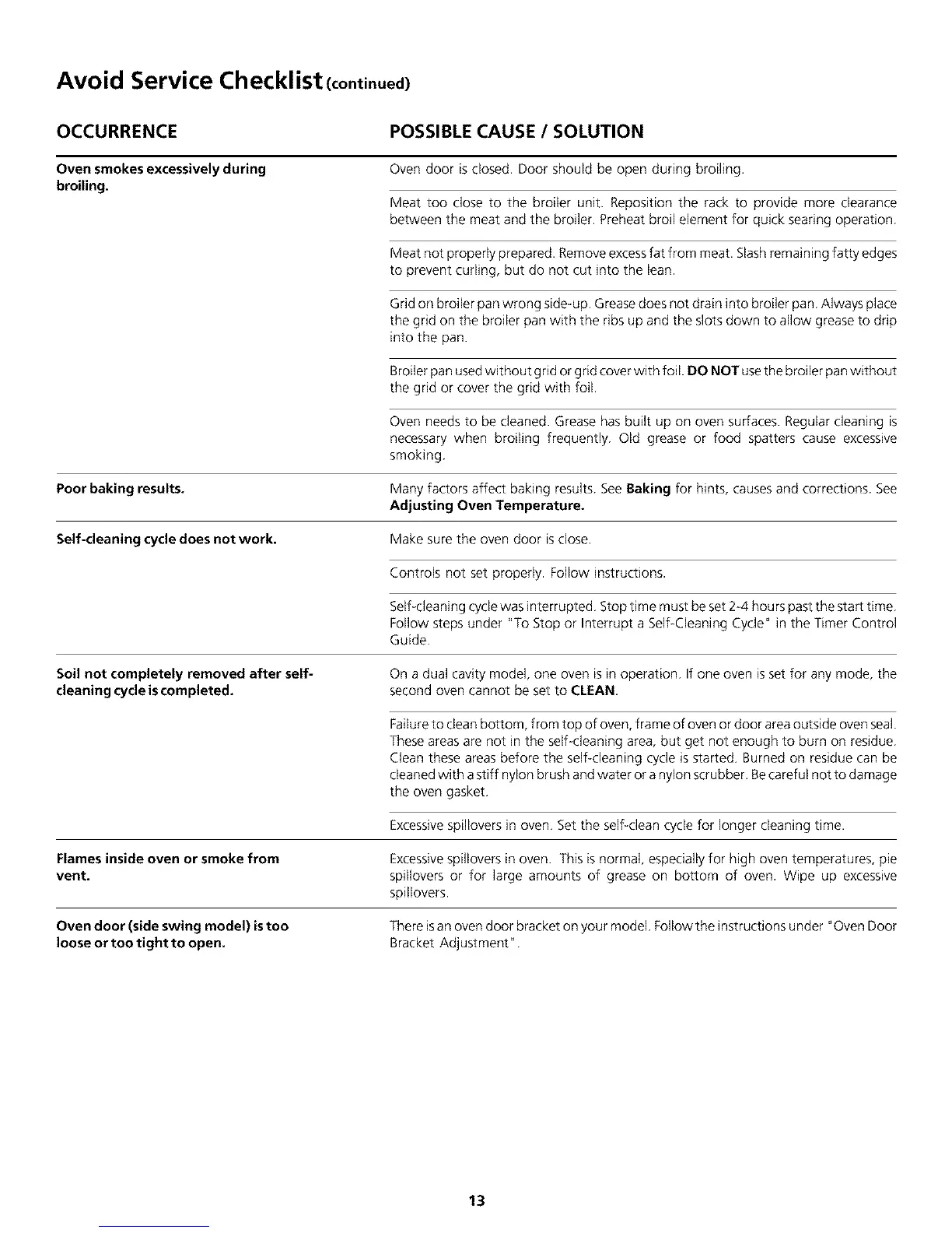 necessary when broiling frequently. Old grease or food spatters cause excessive