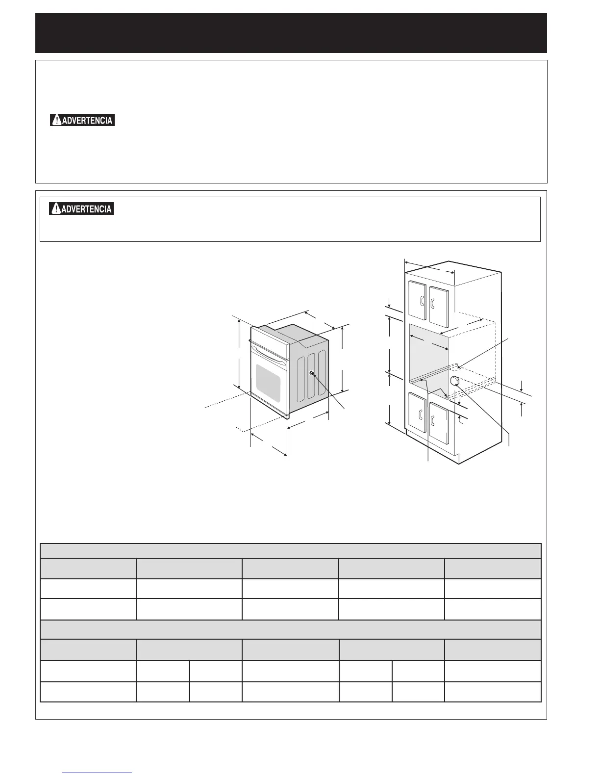 Hornos simples de Pared de 27" y 30" (Para hornos dobles, ver la Figura 2)