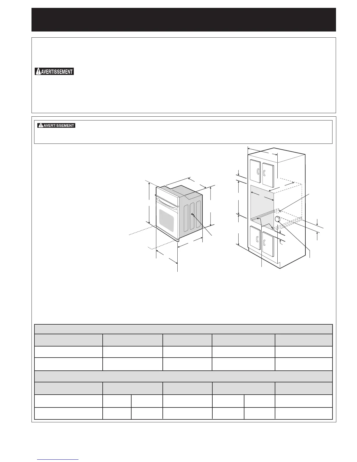 Fours encastrés simples 27" et 30" (Pour les fours encastrés doubles voir la figure 2)