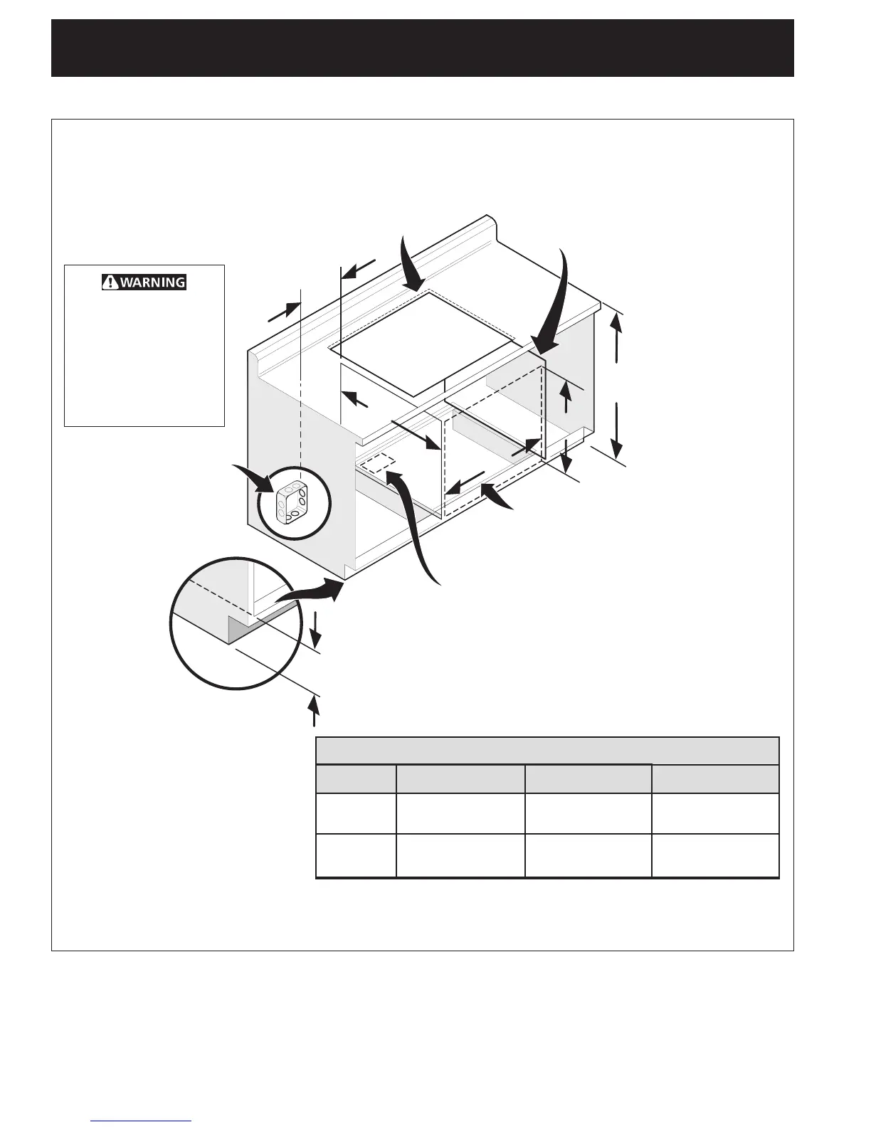 6.For typical under counter installation of an electric built-in oven see Figure below.
