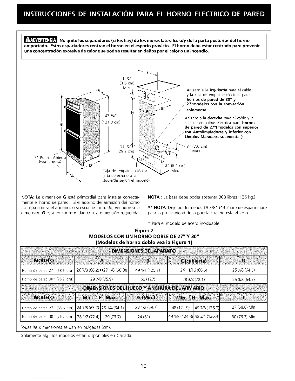 NOTA: La dimensi6n G est.1 primordial para instalar correcta- NOTA : La basa debe poder sostener 300 libras (136 kg.)