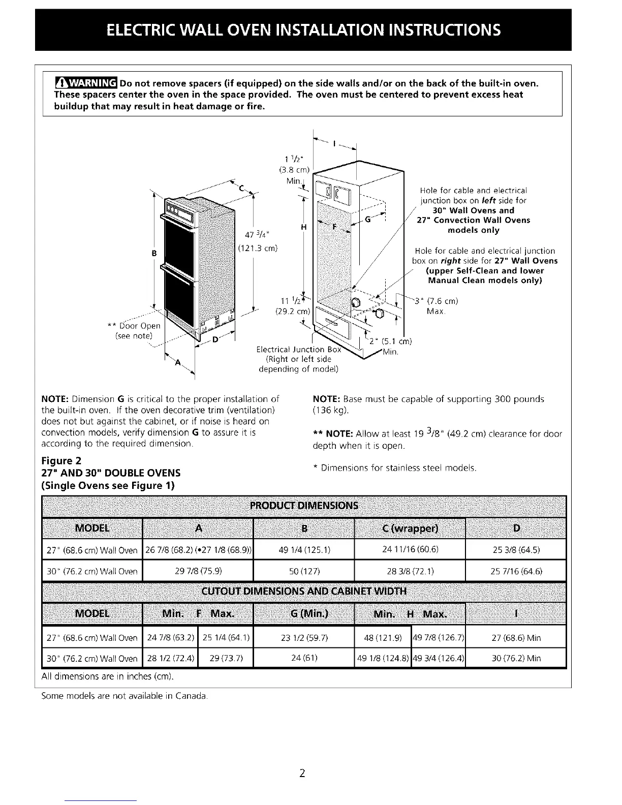 30 '_(76.2 cm) Wall Oven 29 7/8 (75.9) 50 (127)