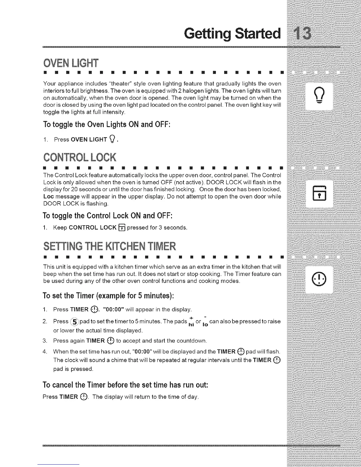 beep when the set time has run out. It does not start or stop cooking. The Timer feature can