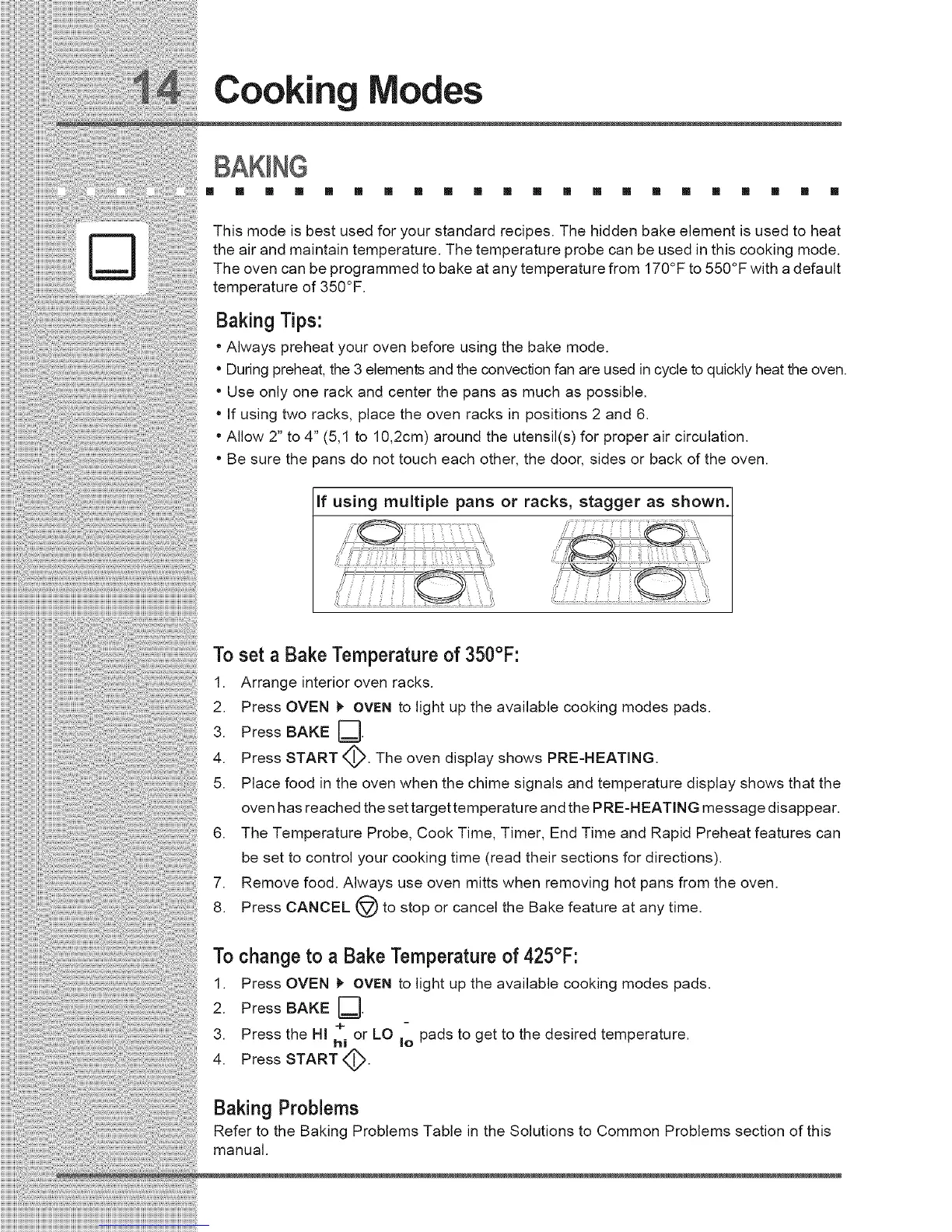 Refer to the Baking Problems Table in the Solutions to Common Problems section of this