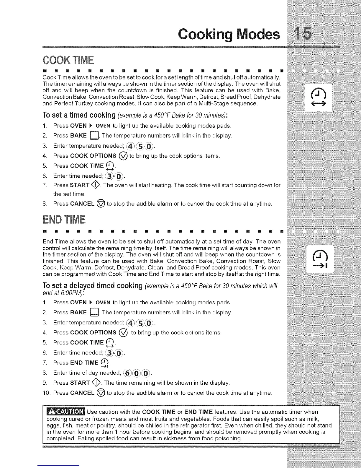 Use caution with the COOK TIME or END TIME features. Use the automatic timer when