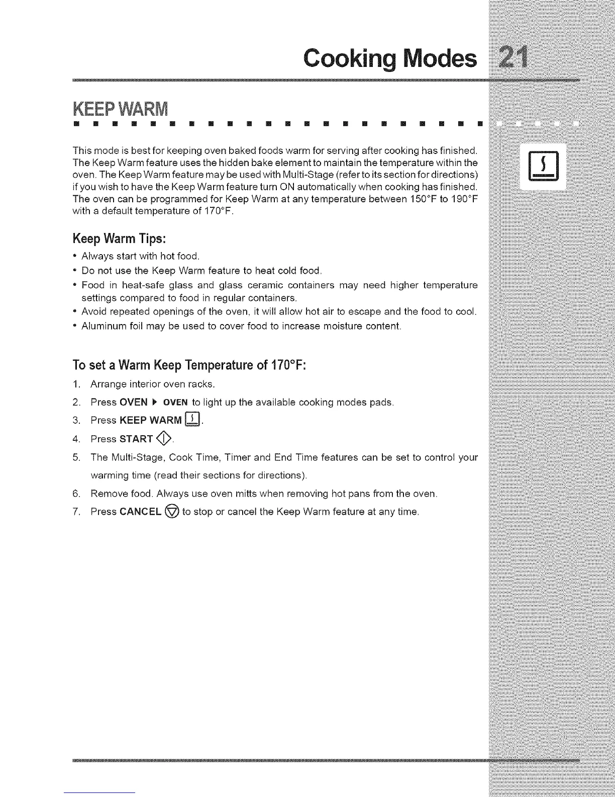 oven. The Keep Warm feature may be used with Multi-Stage (refer to its section for directions)