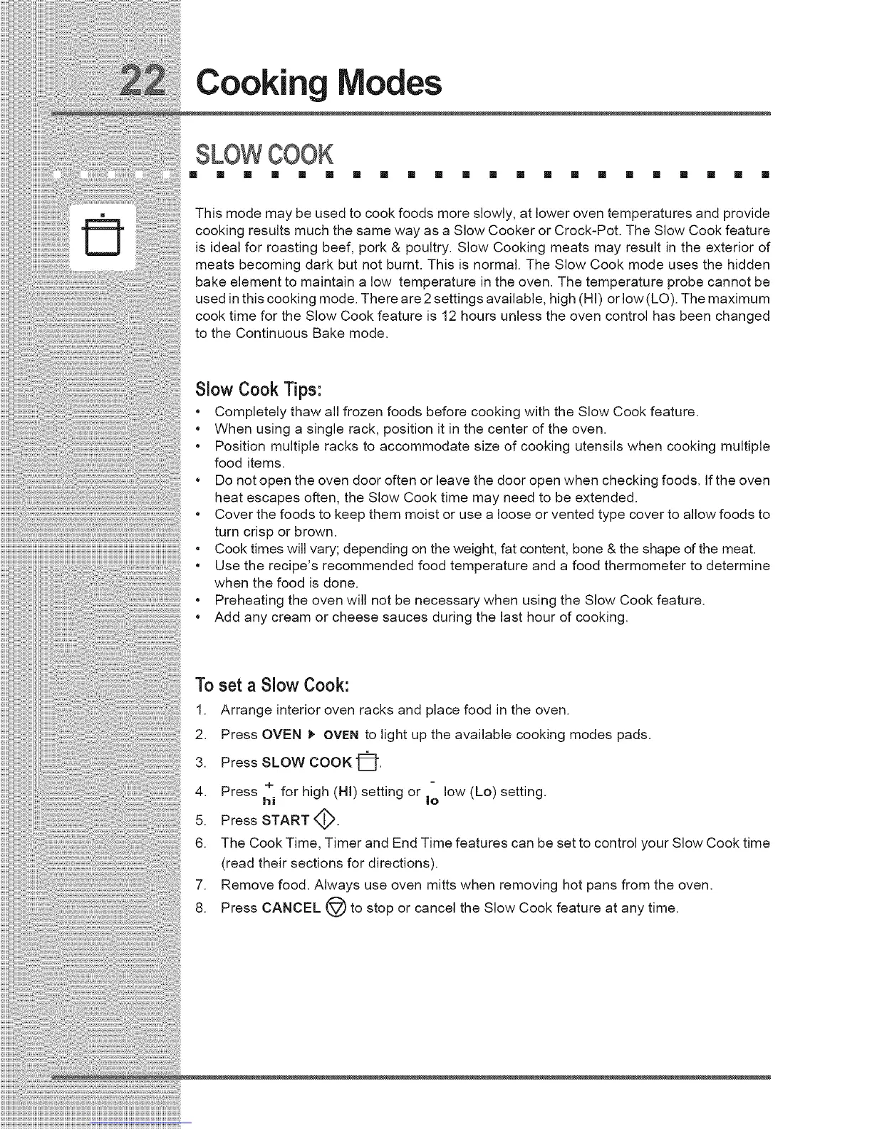cooking results much the same way as a Slow Cooker or Crock-Pot. The Slow Cook feature