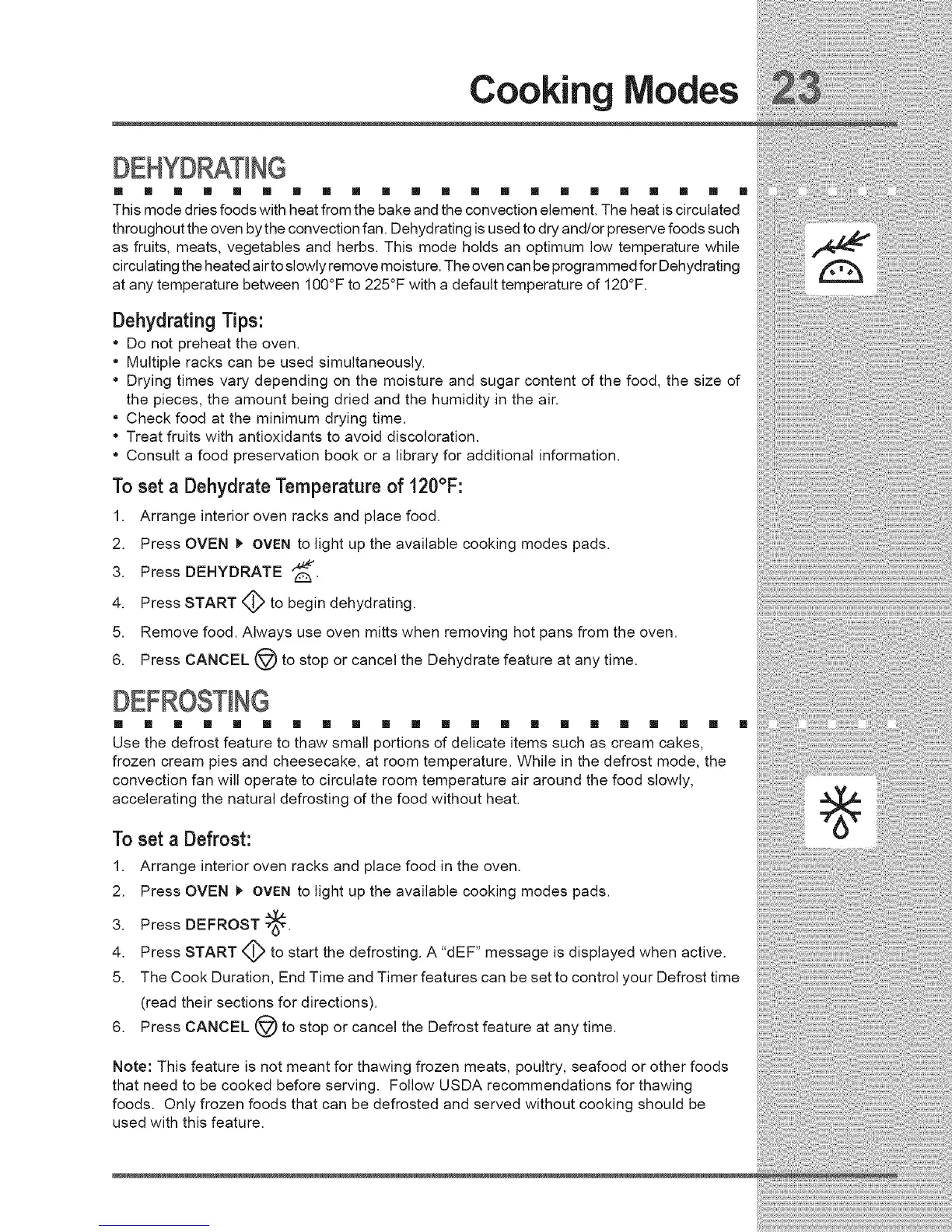 6. Press CANCEL @ to stop or cancel the Defrost feature at any time.