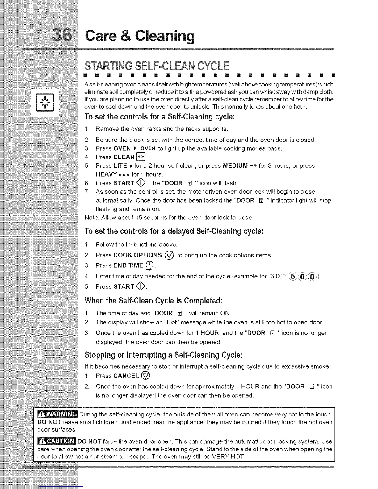 care when opening the oven door after the self-cleaning cycle. Stand to the side of the oven when opening the