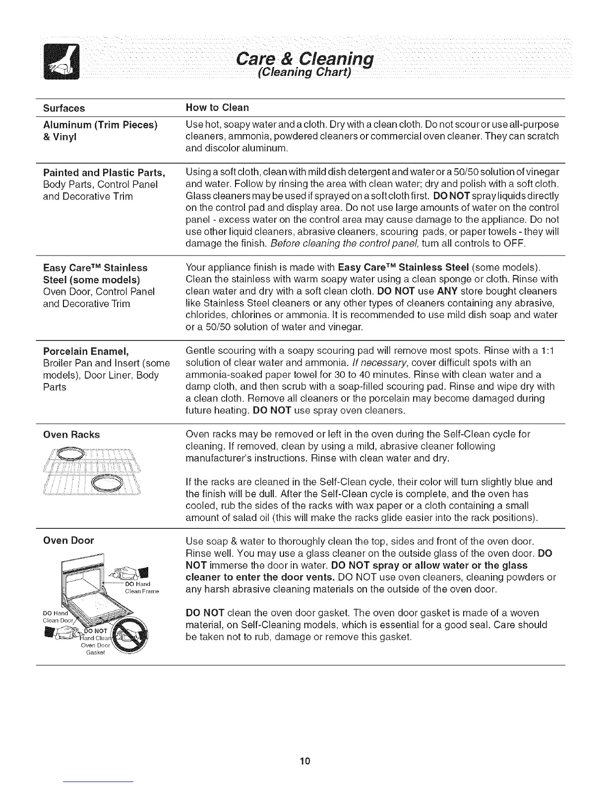 cleaner to enter the door vents. DO NOT use oven cleaners, cleaning powders or