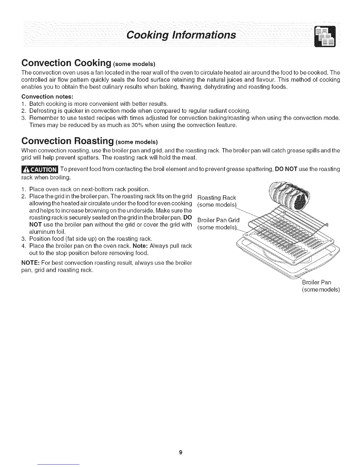 3. Remember to use tested recipes with times adjusted for convection baking/roasting when using the convection mode.