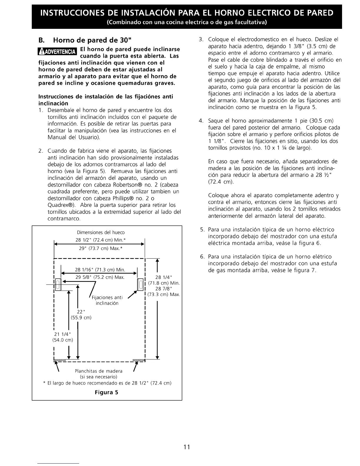 * El largo de hueco recomendado es de 28 1/2" (72.4 cm)