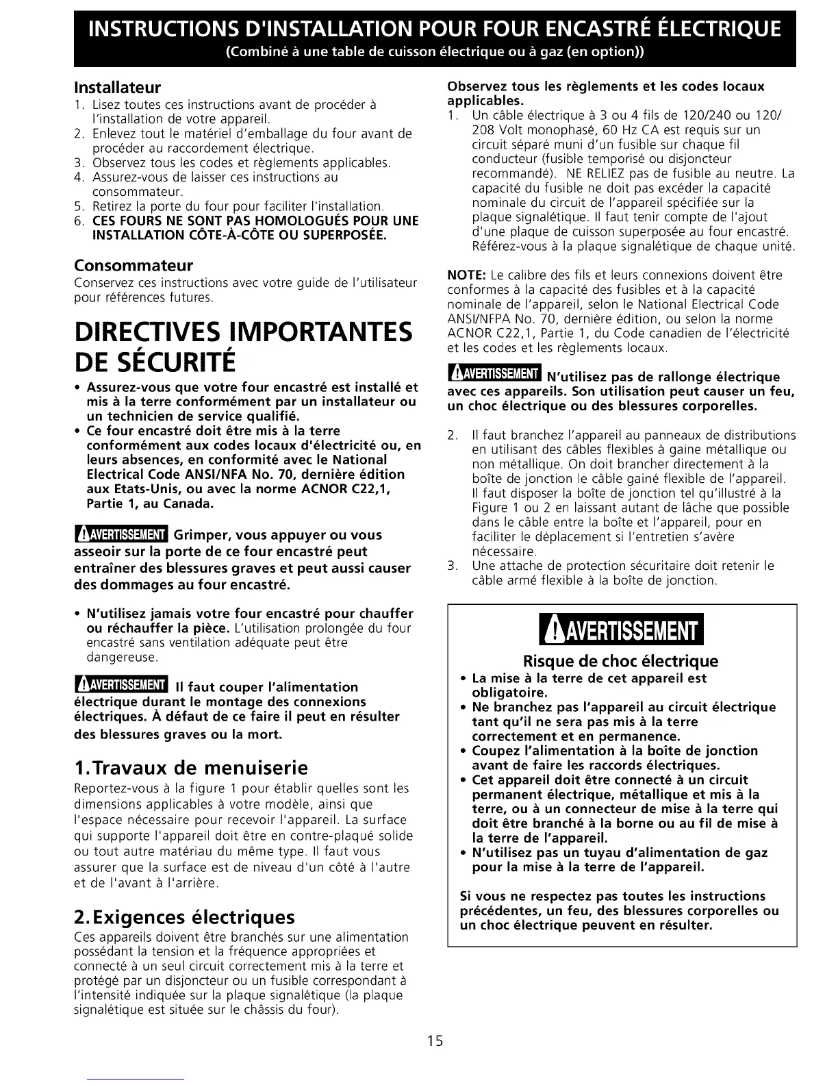conform6ment aux codes Iocaux d'61ectricit6 ou, en