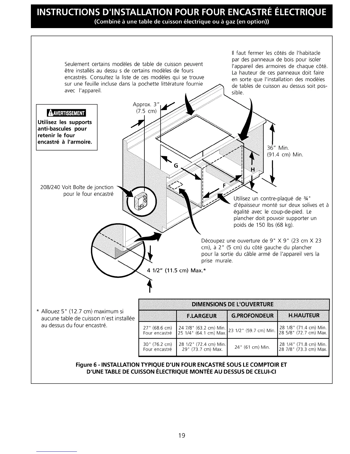 Figure 6 - INSTALLATION TYPIQUE D'UN FOUR ENCASTRI_ SOUS LE COMPTOIR ET