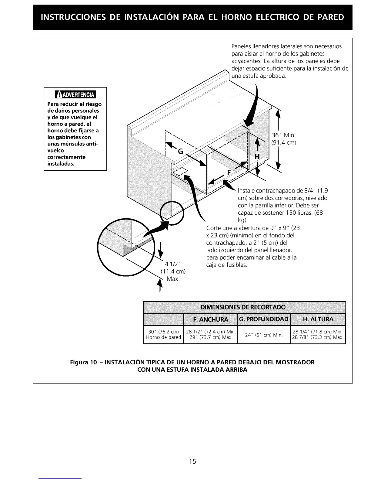 Figura 10 - INSTALACION TIPICA DE UN HORNO A PARED DEBAJO DEL MOSTRADOR