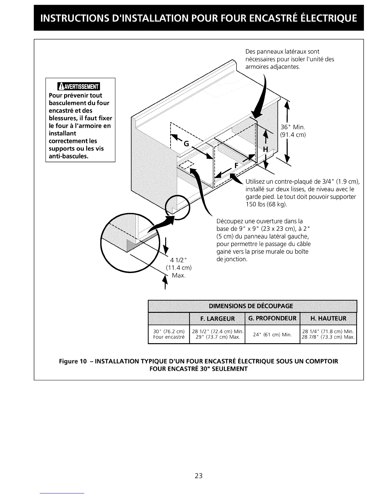 Figure 10 - INSTALLATION TYPIQUE D'UN FOUR ENCASTRI_ I_LECTRIQUE SOUS UN COMPTOIR