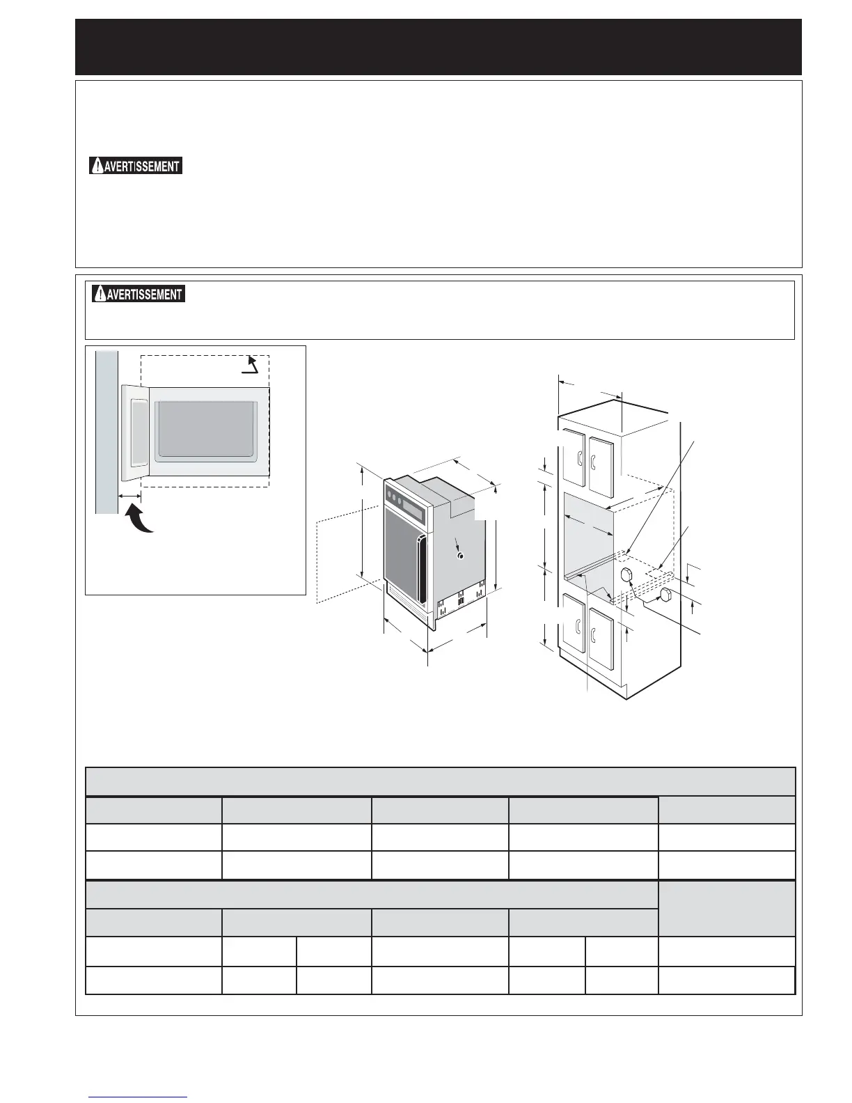 centrent le four dans l’espace fourni. Le four doit être centré pour prévenir une accumulation excessive de chaleur,