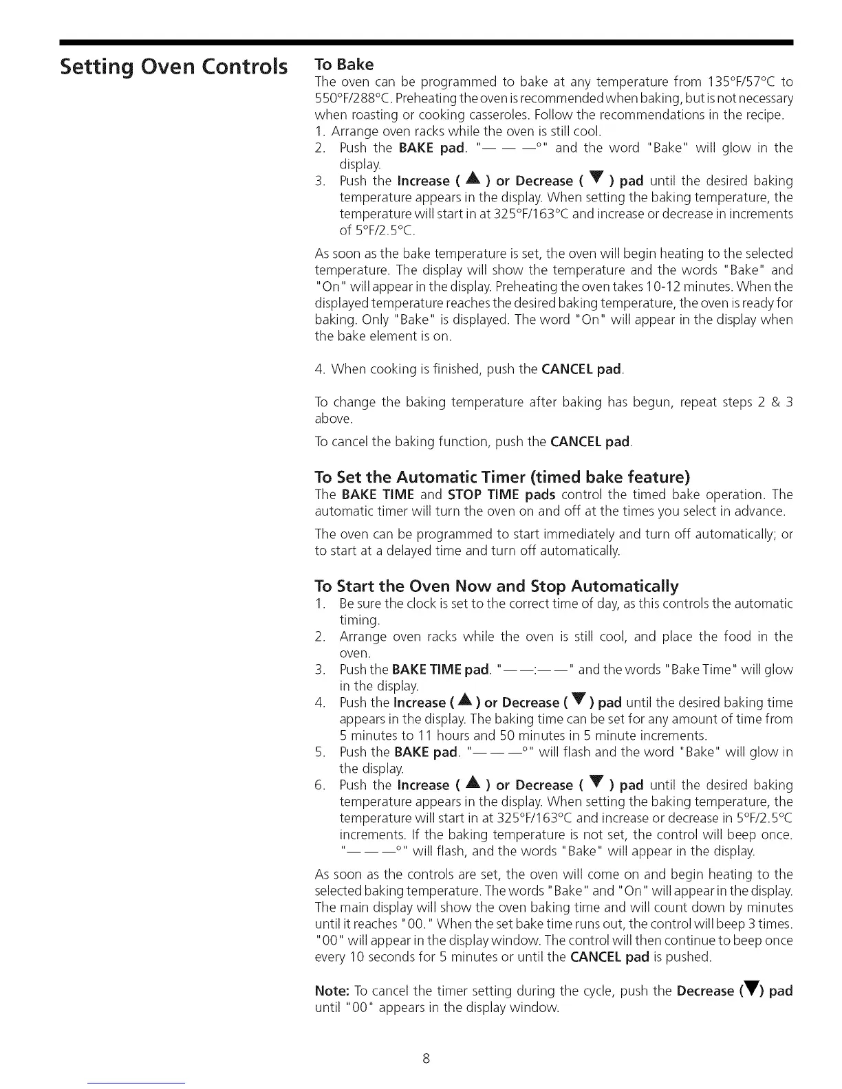 4. Push the Increase ( A ) or Decrease (_') pad until the desired baking time