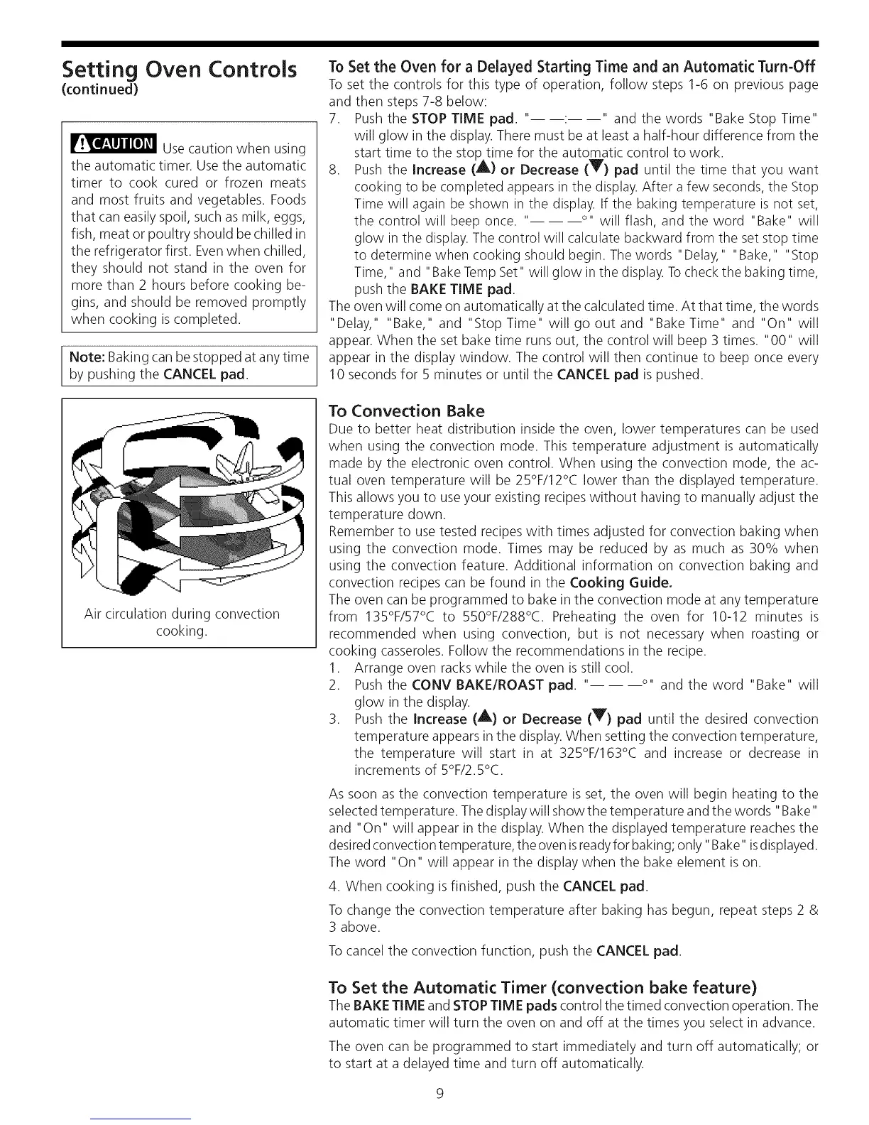 to determine when cooking should begin. The words "Delay, .... Bake," "Stop