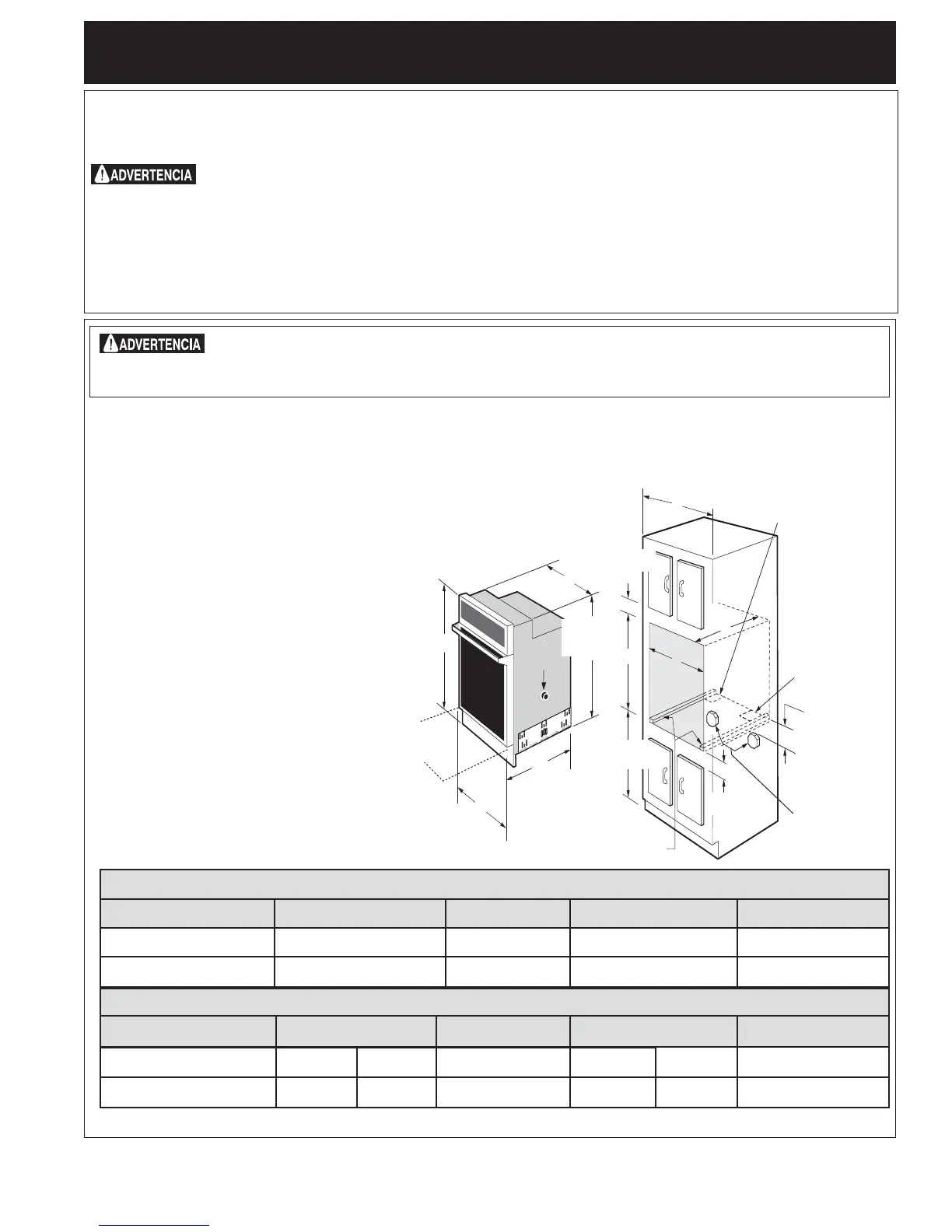 NOTA: La dimensión G está primordial para instalar correctamente el horno de pared. Si el adorno del armazón del horno no topa