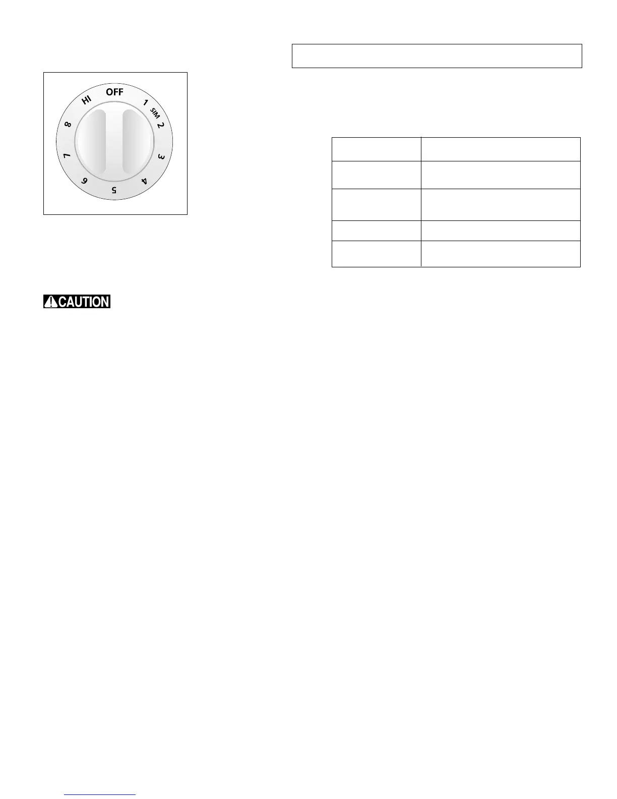 heating at all. If this happens, turn the knob to a higher setting until the heating unit comes on.