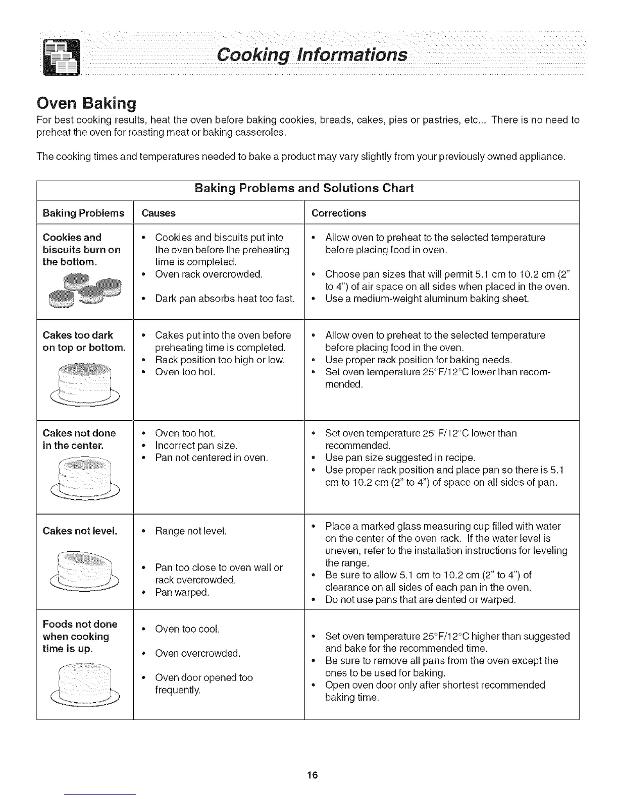 The cooking times and temperatures needed to bake a product may vary slightly from your previously owned appliance.