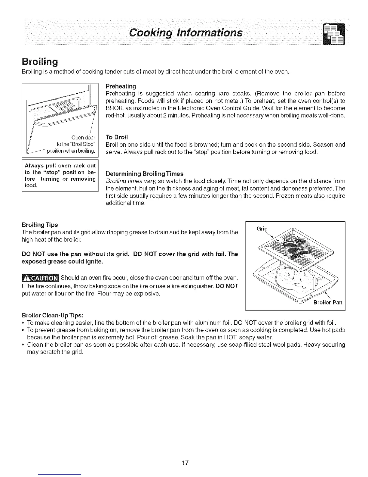 • To prevent grease from baking on, remove the broiler pan from the oven as soon as cooking is completed. Use hot pads