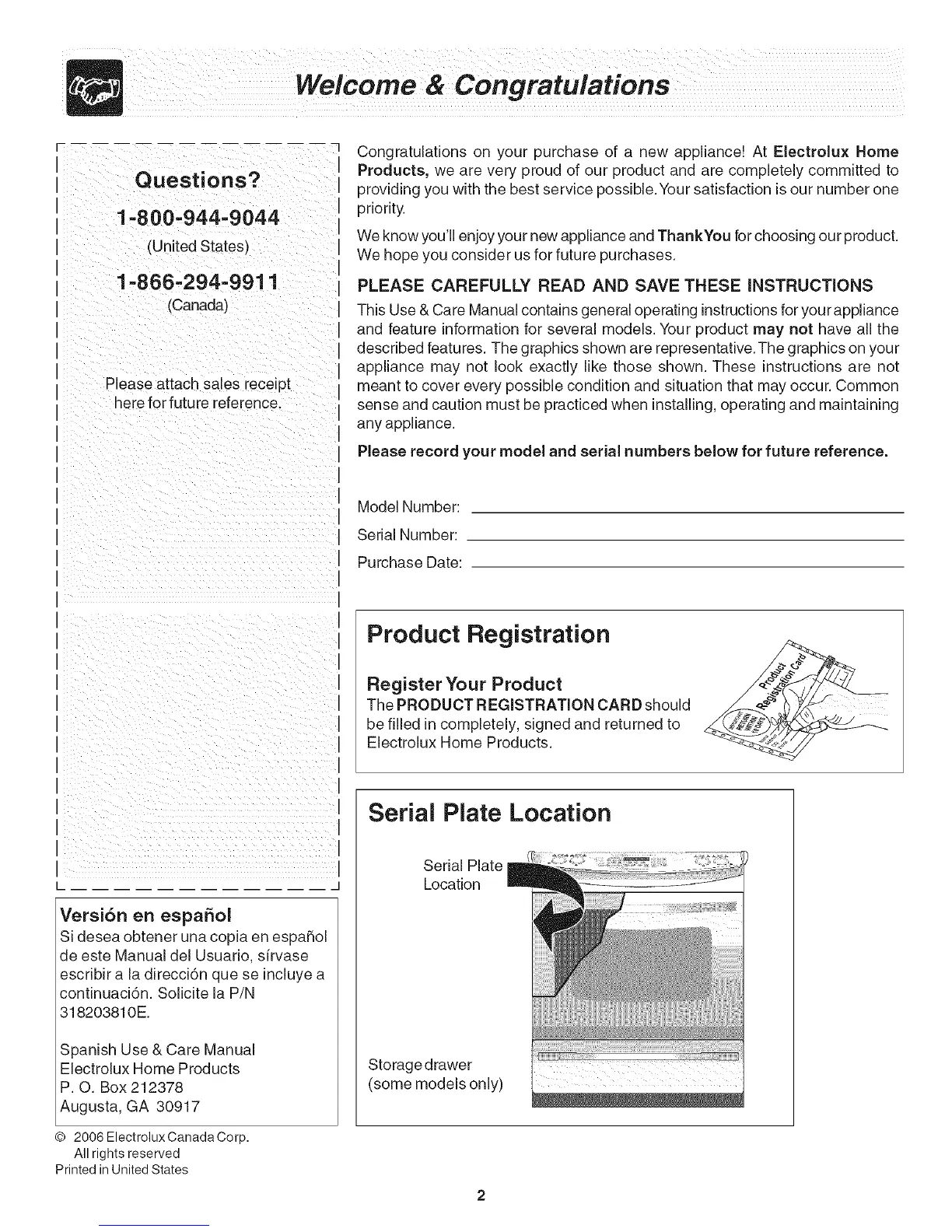 Congratulations on your purchase of a new appliance! At Electrolux Home