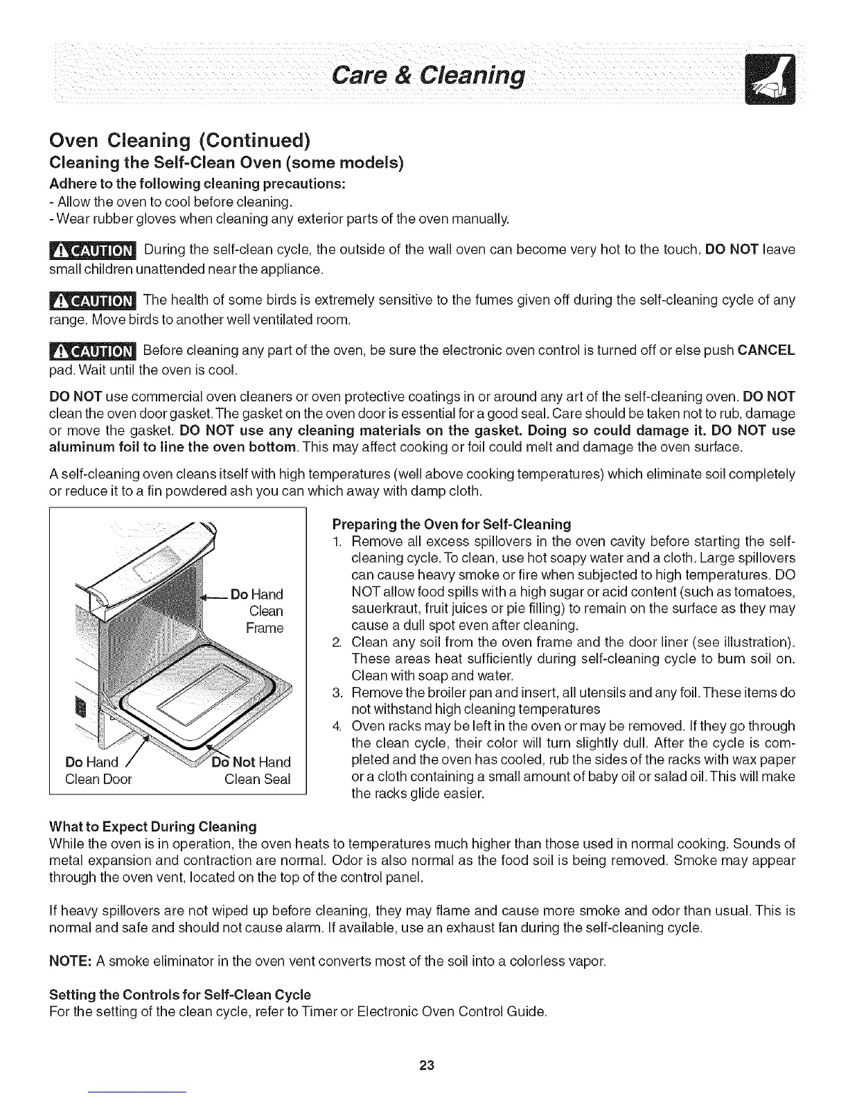 normal and safe and should not cause alarm. If available, use an exhaust fan during the self-cleaning cycle.