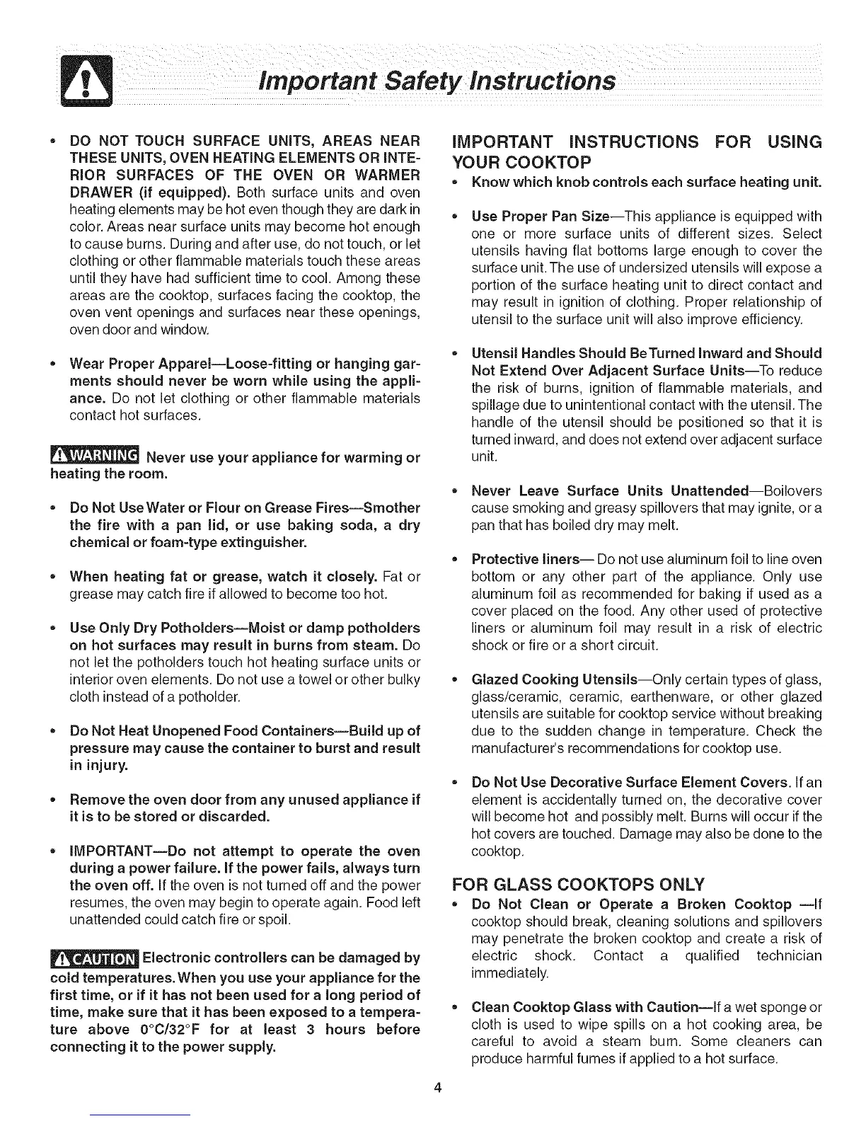 • Do Not UseWater or Flour on Grease Fires--Smother