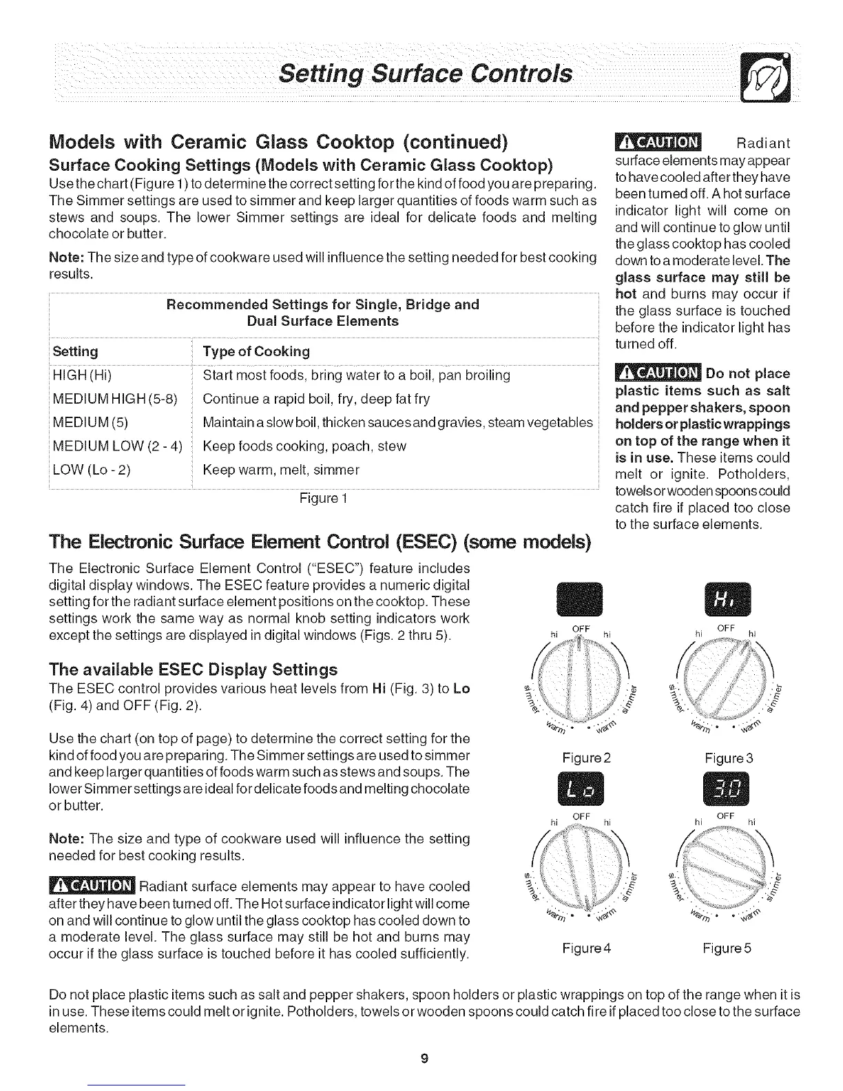 The ESEC control provides various heat levels from Hi (Fig. 3) to Lo