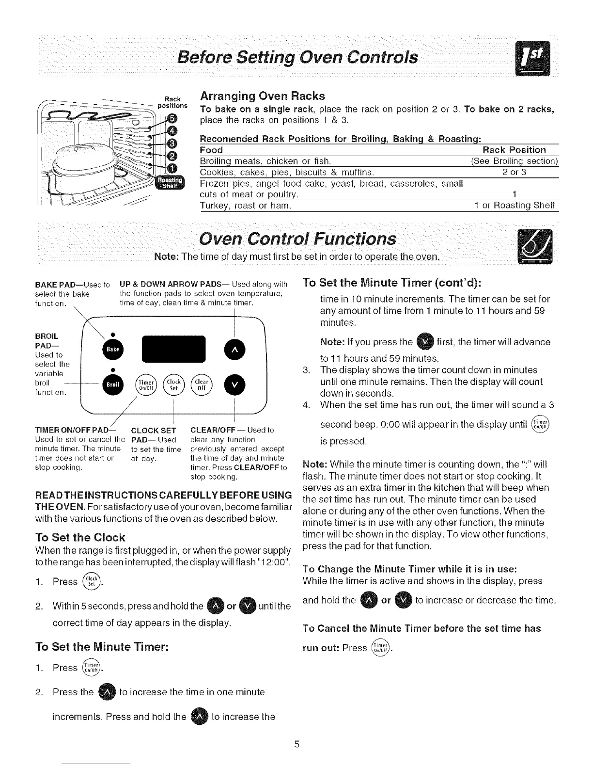 Recomended Rack Positions for Broilinq, Baking & Roasting: