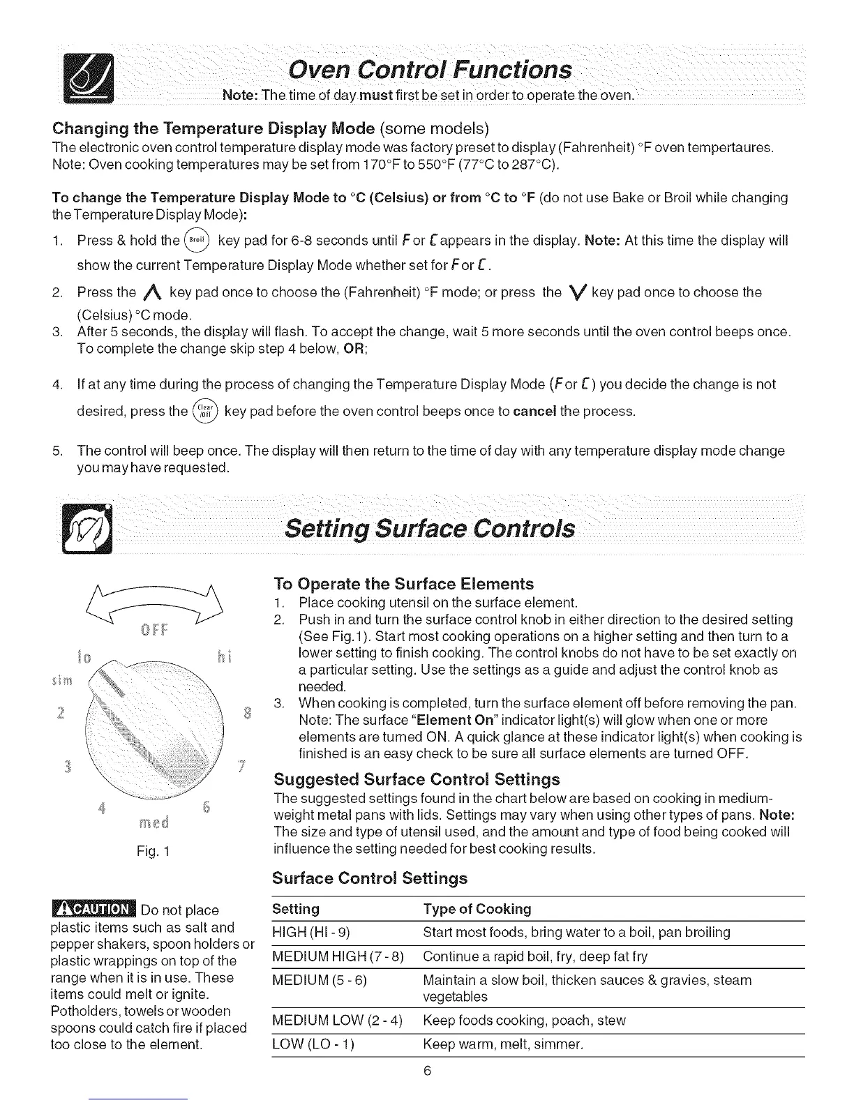 (See Fig.t). Start most cooking operations on a higher setting and then turn to a