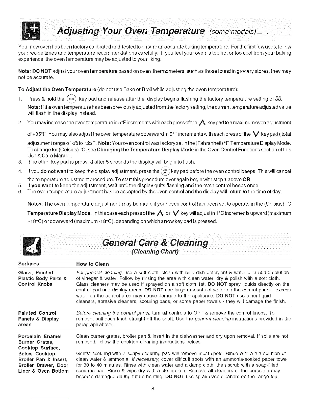 Notes: The oven temperature adjustment may be made if your oven control has been set to operate in the (Celsius) °C