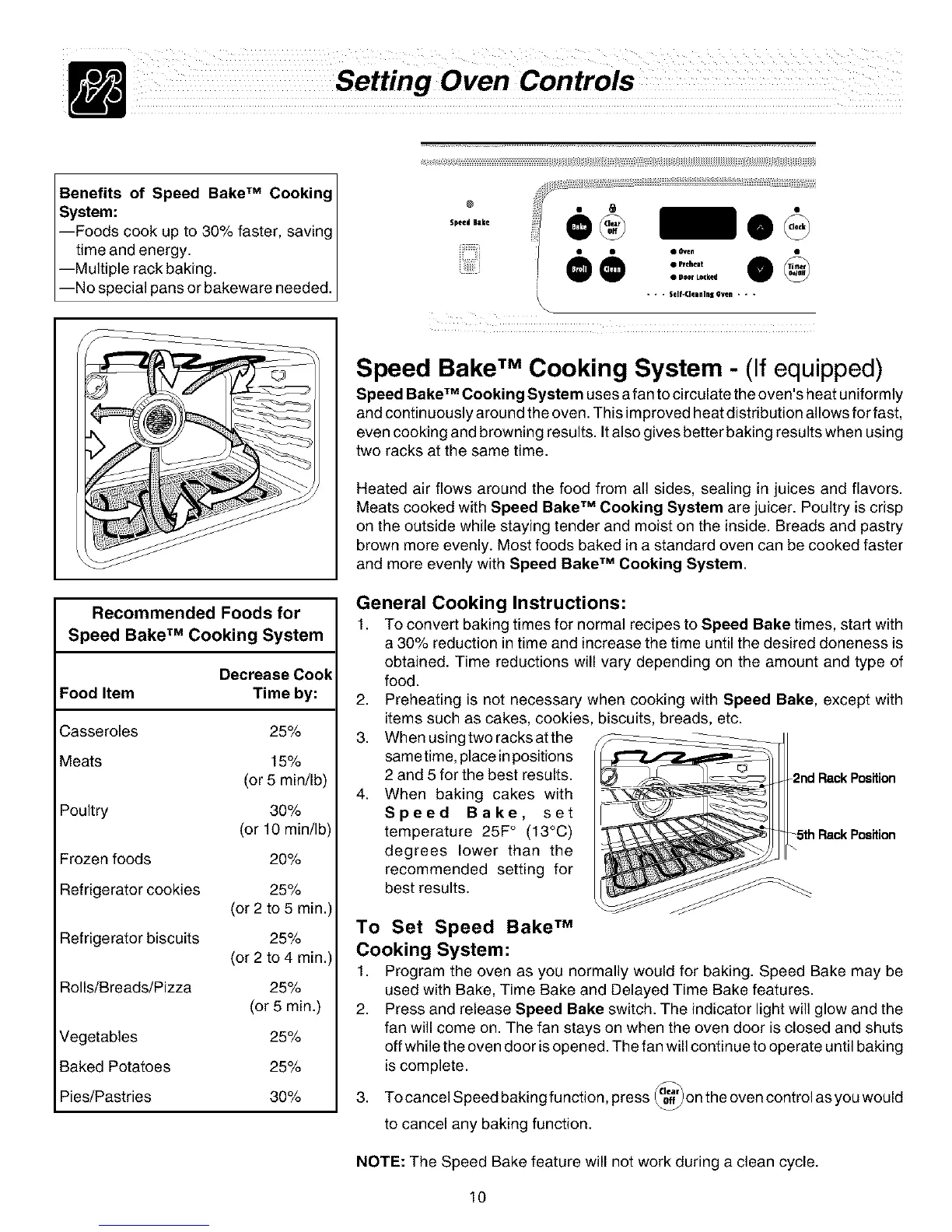 Speed Bake TM Cooking System uses a fan to circulate the oven's heat uniformly