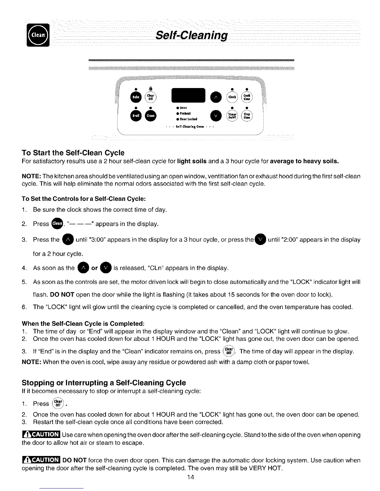 For satisfactory results use a 2 hour self-clean cycle for light soils and a 3 hour cycle for average to heavy soils.