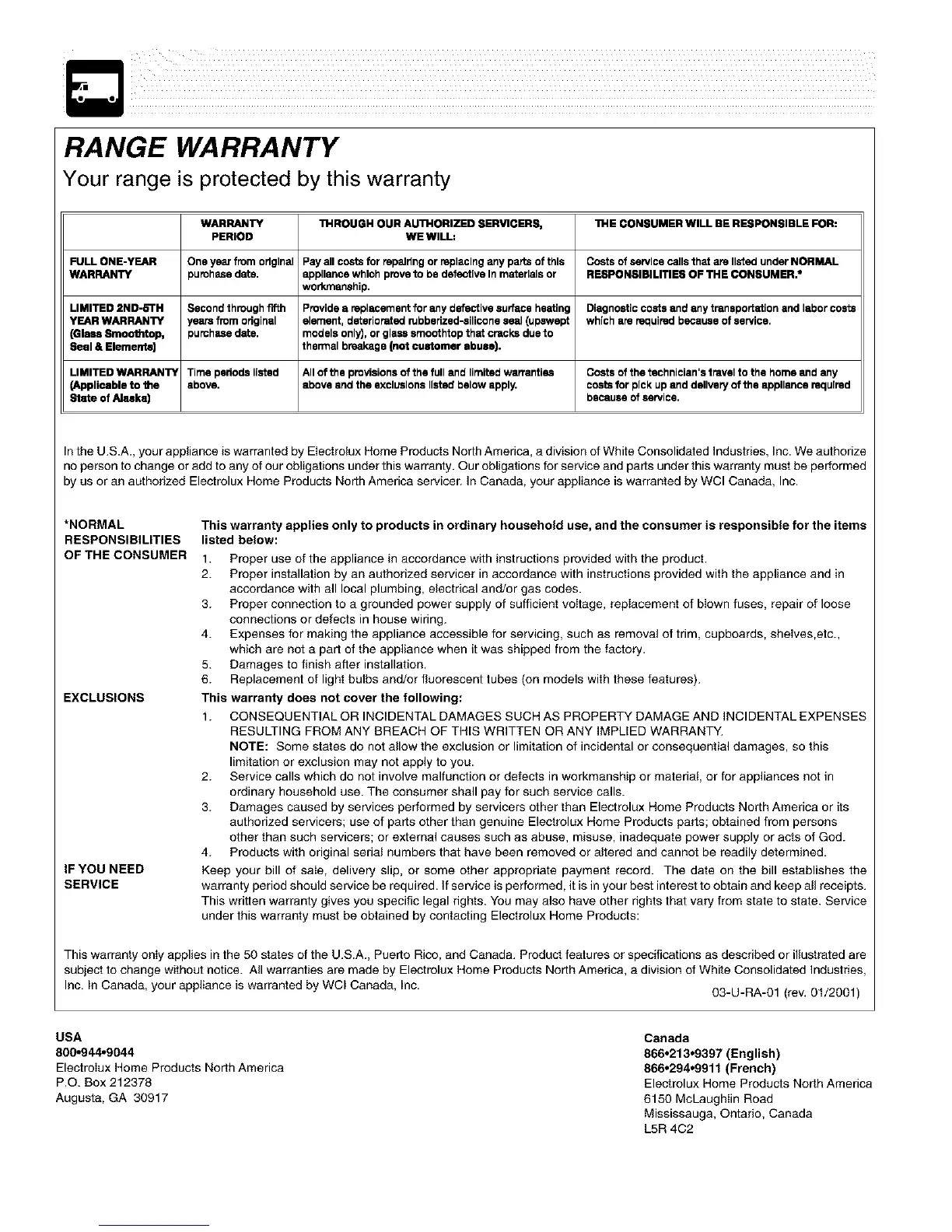 Inc. In Canada, your appliance is warranted by WCI Canada, Inc. 03-U-RA-01 (rev. 01/2001)
