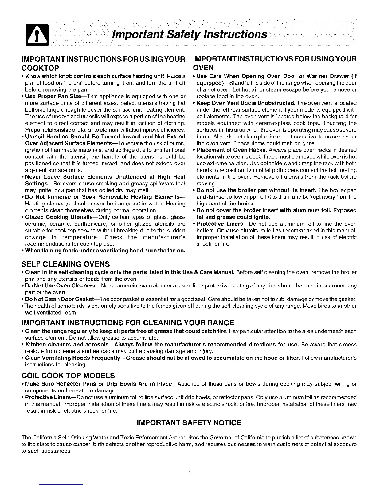 IMPORTANT INSTRUCTIONS FOR CLEANING YOUR RANGE
