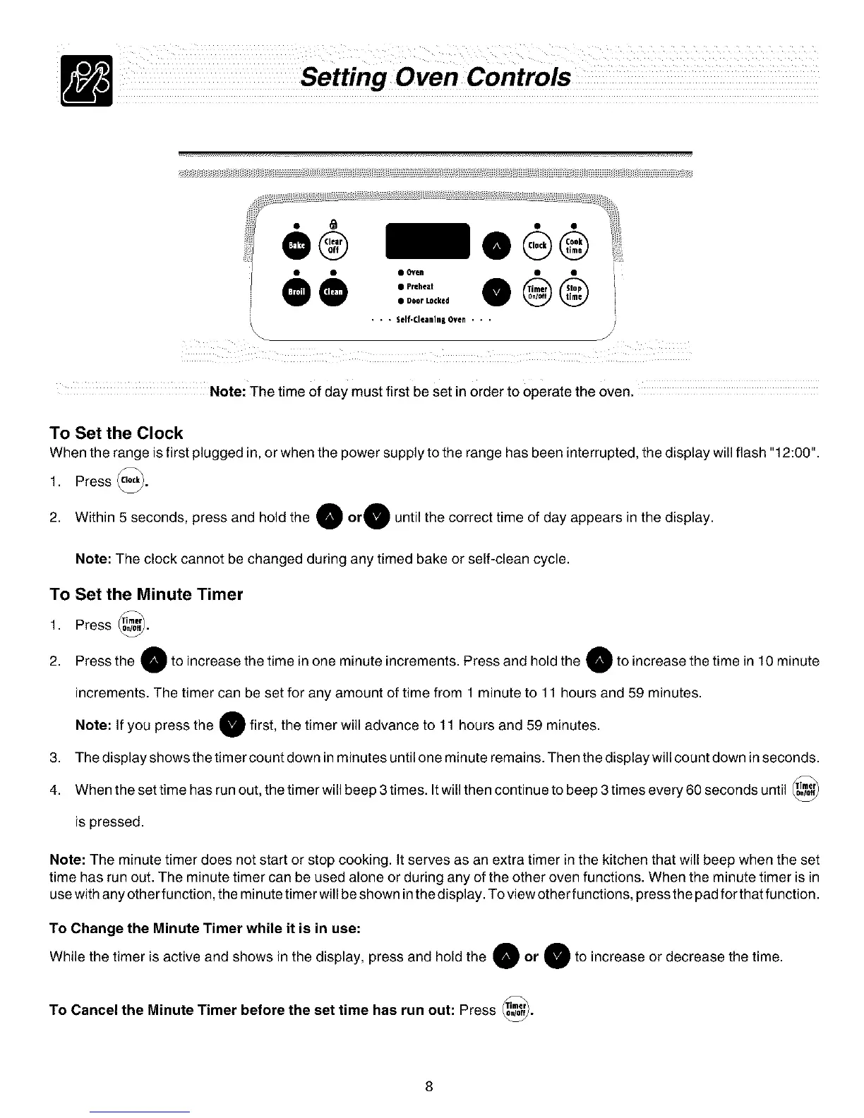 Note: The clock cannot be changed during any timed bake or self-clean cycle•