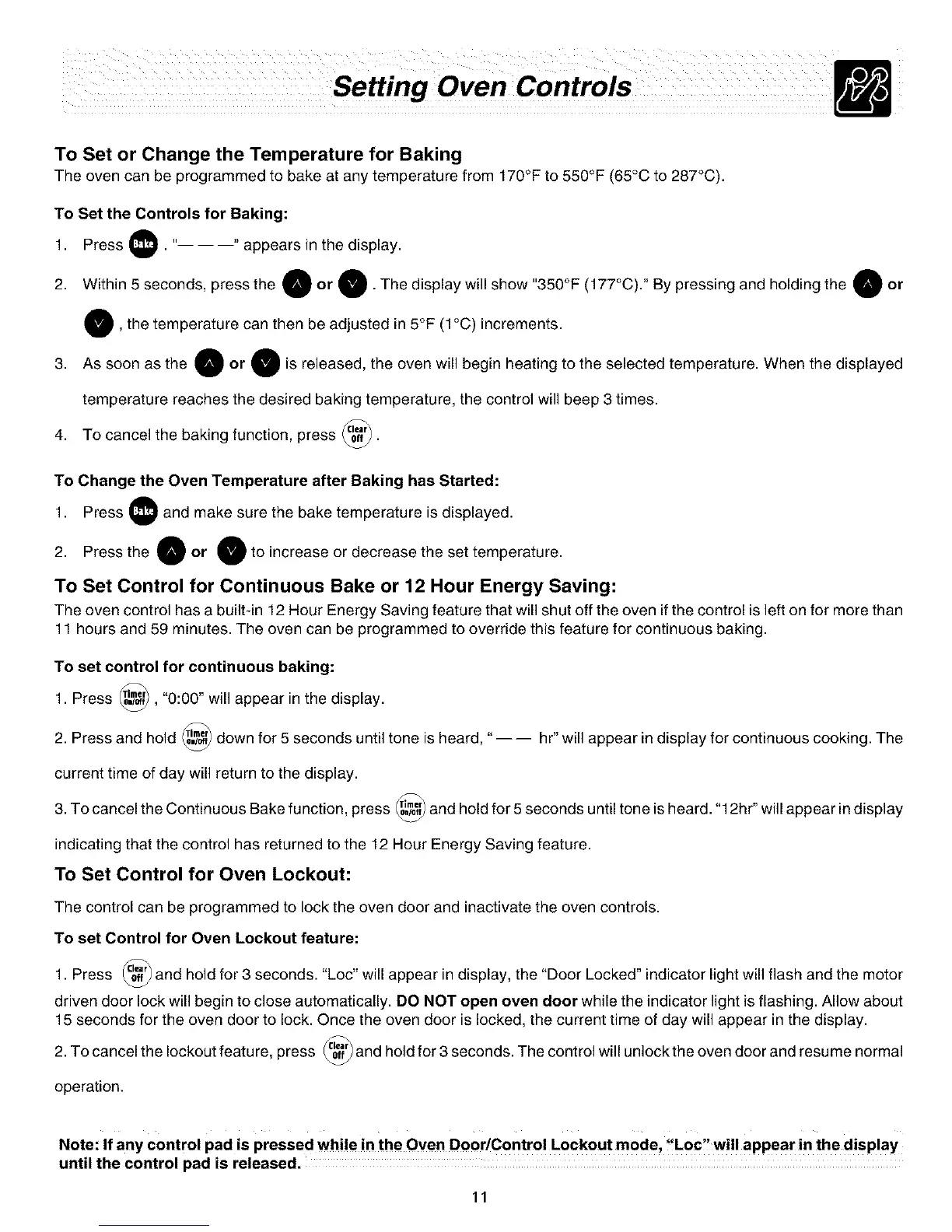 Note: If any control pad is pressed while in the Oven Door/Control Lockout mode, "Loc" will appear in the display