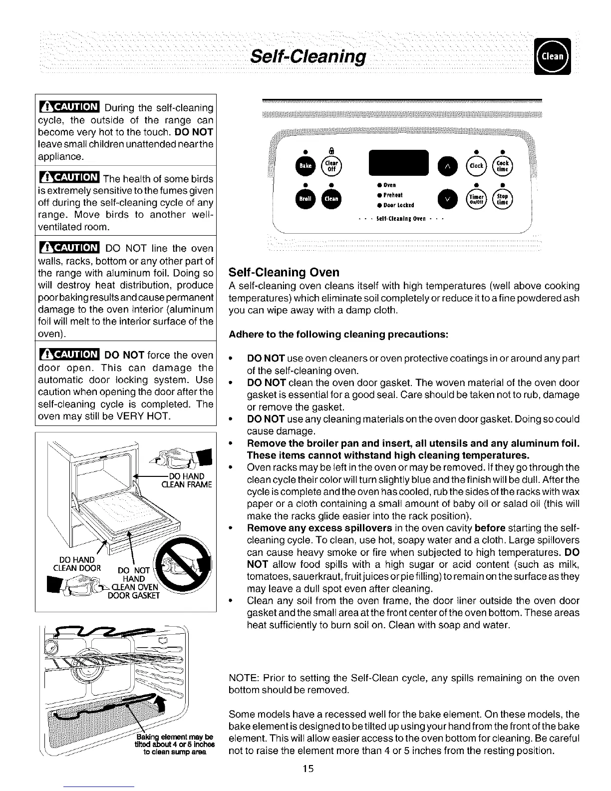 NOTE: Prior to setting the Self-Clean cycle, any spills remaining on the oven